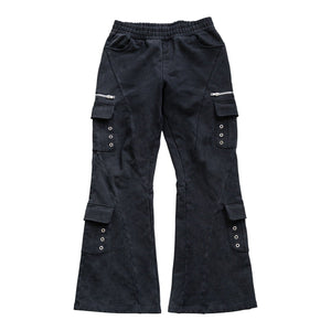 - Loose fit with flared bottoms
